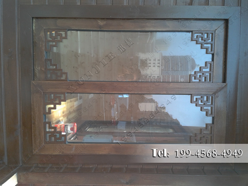 6、定做木屋别墅活动门窗:防爆钢化玻璃、铝合金型材、耐用、美观;
